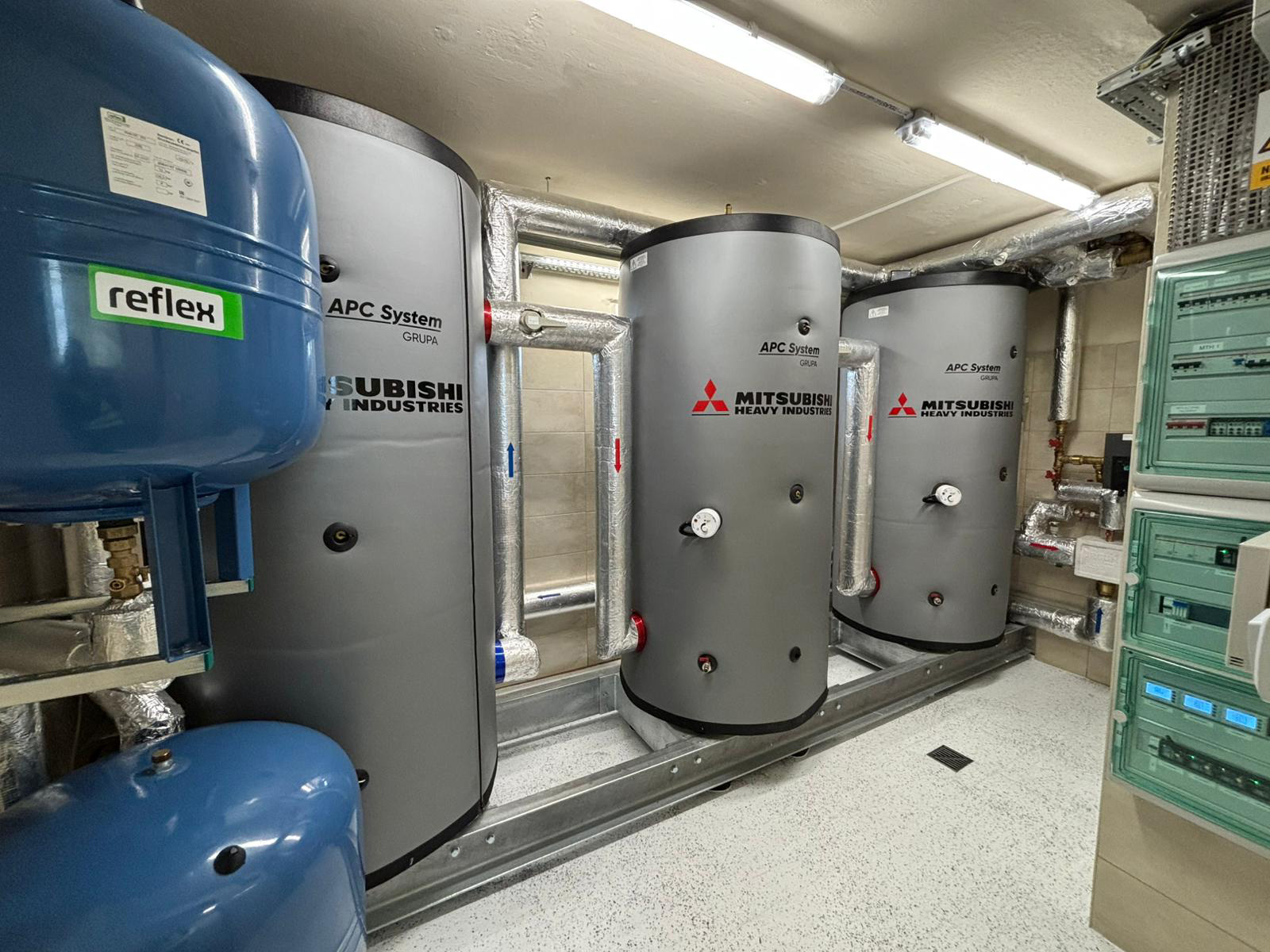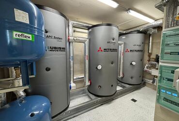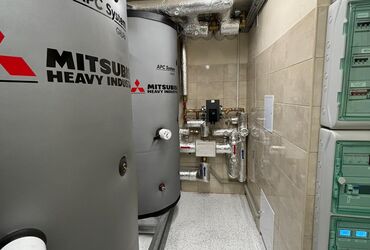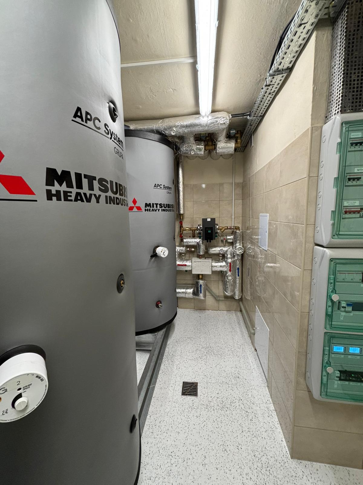 • Pompa ciepła Q-ton Mitsubishi Heavy Industries na czynnik chłodniczy CO2 na potrzeby c.w.u w budynku wielorodzinnym